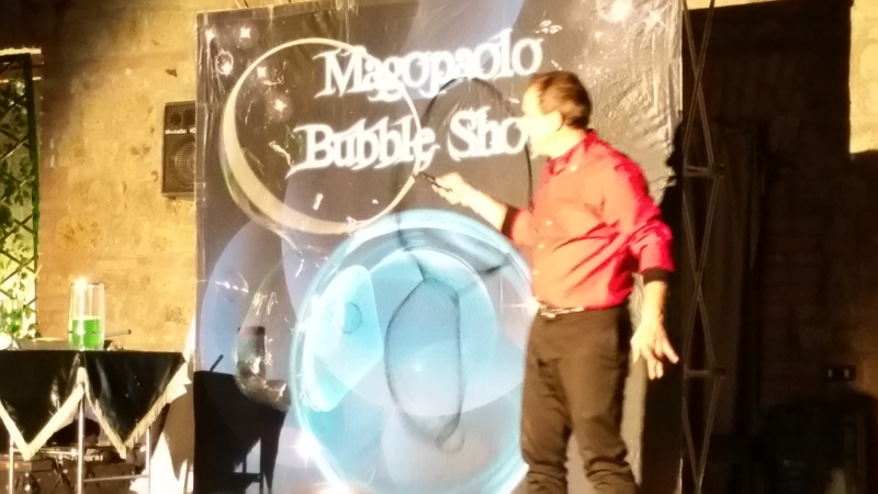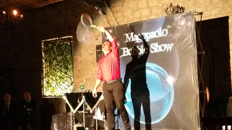 Probabilmente, se Costantino, in quel lontano 28 ottobre (!!!) del 312 d.C., dopo aver dato una prima legnata alle truppe di Massenzio in quella località oggi nota come “Saxa Rubra”, non solo per le sue rocce di tufo rossastro ma, come asseriscono alcuni storici, anche per il sangue versato dai combattenti, nel dirigersi verso Roma per concludere definitivamente la controversia nei pressi di Ponte Milvio, percorrendo la Via Flaminia avesse attraversato un borgo dolcemente adagiato su di una piccola collinetta, immerso nel verde e allietato da un rustico ristorante caldo e accogliente dove ritemprare membra e stomaco, oggi potremmo leggere una storia diversa: Massenzio l’avrebbe scampata e forse sarebbe diventato lui l’imperatore; Costantino, sazio e leggermente brillo, si sarebbe chiesto: “Ma chi me lo fa’ fare?”, non avrebbe visto la Croce che lo tranquillizzava, e forse oggi noi romani avremmo praticato un’altra religione. Ma così non poteva accadere: il borgo, che oggi ci si presenta con tutte le sue meraviglie, pur essendo antico, a quei tempi ancora non esisteva, per sfortuna di Massenzio e per buona sorte di Costantino. E anche per fortuna nostra e di tutti quelli che prediligono la tranquillità, il silenzio irreale a poca distanza dal rumoroso infernale traffico della Via Flaminia, la calda accoglienza di un ambiente rustico e incontaminato, suggestivo nel suo rispetto delle strutture originarie. E per ultimo, ma non ultimo, la certezza di gustare una cucina tradizionale, lontana da quella “nouvelle cousine”, oggi tanto di moda! Questo è il luogo scelto dal nostro Presidente Lomonaco, il Casale di Tor di Quinto, per far trascorrere a noi soci dell’Aurelium, insieme agli amici del Club Roma Amicitia, una divertente serata di un carnevale ormai declinante - venerdì 13 febbraio -, al tenue languido chiarore di vecchi lampadari a candela e allietata da uno spettacolo leggero e intrigante: le bolle di sapone di MagoPaolo. Incantato, come tutti i presenti, da quel turbinio di bolle di sapone che scaturivano da un qualsiasi oggetto che avesse un foro da cui fuoriuscire e indifferenti a tutte le manipolazioni e le strattonate alle quali venivano sottoposte, nel corso della stupefacente esibizione di Mago Paolo più di una volta mi ero chiesto perché invece quelle che, sgocciolanti come la bocca di un cane affannato da una lunga corsa, scaturivano dalla legnosa cannuccia di sambuco, svuotata della pastosa anima e imboccata dallo scrivente, resistevano lo spazio di qualche secondo per poi scoppiare con un silenzioso “plop” e andare a raggiungere, con triste caduta, la goccia che le aveva nel frattempo abbandonate, contribuendo a rendere sempre più intriso di acqua il pavimento e sempre più inferocita la mamma, alla quale si prospettava un supplemento di passaggio di straccio da terra per l’asciugatura. Oltre questo non veniva fuori da quella brodaglia lattiginosa che fluttuava nella tazza più sbocconcellata che la casa offriva, ottenuta aspettando pazientemente che i pezzetti del sapone da bucato che avevi messo a mollo si sciogliessero, agevolandone la decomposizione soffiando dentro la tazza con la cannuccia, con il risultato che la schiuma cominciava a debordare con una tale abbondanza che perdevi di vista il liquido sottostante. E iniziavi a provare e riprovare se il “brodo” era pronto, facendo soltanto sgocciolare la cannuccia e dando inizio all’inondazione. Oggi è cambiato tutto, grazie all’invenzione del detersivo liquido per piatti, affatto sconosciuto ai miei tempi e sostituito allora da abbondante acqua calda, con l’aggiunta di un po’ di bicarbonato di sodio. Ma per arrivare alla formula odierna ce n’è voluto di tempo: sicuramente la questione deve aver affascinato più di un valente ricercatore, motivato dal pressante desiderio di risolvere ardue problematiche, non tanto domestiche quanto invece ludiche, sia pure eteree e fugaci. E non soltanto tempo, ma anche prove su prove, ripetuti tentativi, studi importanti per arrivare a concludere che il “brodo” appropriato si poteva ottenere aggiungendo all’acqua non il sapone da bucato, ma il più maneggevole detersivo liquido per piatti assieme ad altri ingredienti e accorgimenti che, leggendo la ricetta, mi hanno stupito per la genialità con la quale sono stati individuati. Innanzi tutto l’acqua deve essere distillata: noi la si conosceva un po’ per sentito dire, un po’ perché concretamente veniva utilizzata per irrorare le stanche ed esauste batterie dell’automobile. Nel suddetto liquido si deve versare un calibrato quantitativo di zucchero o di miele, alimenti ai miei tempi talmente a portata di tasca e di mano da dover essere stati i primi ad essere razionati all’inizio del secondo conflitto mondiale! E infine un altrettanto calibrato quantitativo di glicerina, per il cui uso di allora e odierno no comment! E non finisce qui: alla stregua di un panettone, la miscela deve essere lasciata riposare per almeno tre giorni, dopo i quali aggiungere un altro quantitativo di zucchero e, se si desidera ottenere bolle che per la loro resistenza assomiglino ad un pallone di basket o ad una pallina da tennis, occorre aggiungere altro detersivo e altro zucchero. Arrivati a questo punto, se mi fossi avventurato nella procedura canonica, a me sarebbe venuta voglia di dare una assaggiatina alla quasi melassa che stava fluttuando pigramente nel contenitore, magari con il rischio di soffocarmi per lo schifo. Et voilà! Tutto è pronto: non resta che soffiare oppure agitare in aria un cerchio più o meno ampio e iniziare a stupire il pubblico. Forse in casa, a parte la mamma sempre più perplessa, soltanto il cane ci presterebbe un po’ di attenzione, tentando di incocciare con l’umido naso la bolla che ondeggia pigramente in aria, riflettendo luci e cose; il gatto, con il suo superbo distacco, si limiterebbe ad uno sguardo tra l’indifferente e il compatimento. Invece l’abili